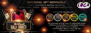 It is in connection to this that Love for the child Association (LOCA) cordially Invites you to our 2018 Red carpet Gala Dinner on 10th November 2018 @ * Laico Regency Nairobi*.