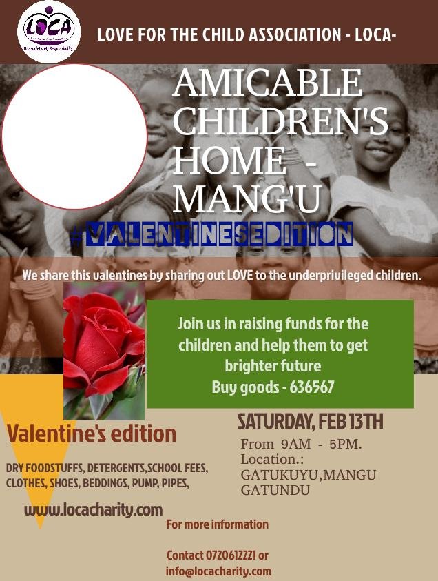 Join us on the 13th of February, 2021 as we celebrate our Valentines' edition at Amicable children's home Mang'u. Remember to tag along a friend! Let's make this bigger and...