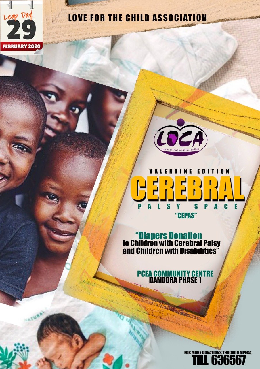 Diapers donation to children with Cerebral palsy and children living with disabilities: On 29th February, 2020, we will be at the PCEA Community Centre in Dandora Phase 1 distributing diapers...